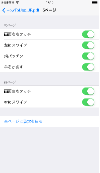 Editボタンをタッチすると、ページ毎にPDFファイルのページの送り方、戻し方を設定することができます。