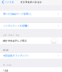 - バージョン・・・本アプリのバージョン番号です。