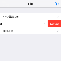 In file list screen, when you swipe the file name from right to left, the delete button will apper. If you touch this button, you can delete the PDF file.