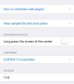 - How to use(Open web pages)・・・Open the web page about how to use this App.